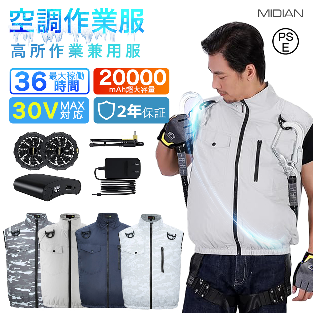 MIDIAN 空調作業服 30V 20000大容量 9枚羽根付き 扇風服 扇風作業服 作業服 扇風パンツ 扇風ウェア 作業着 防水 熱中症対策 現場工事 男女通用 PSE