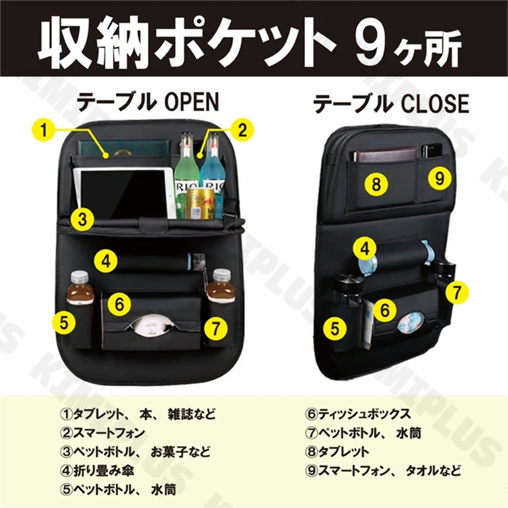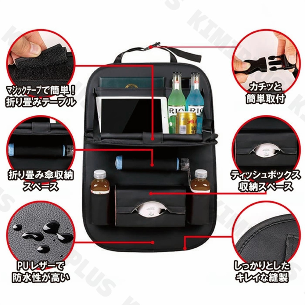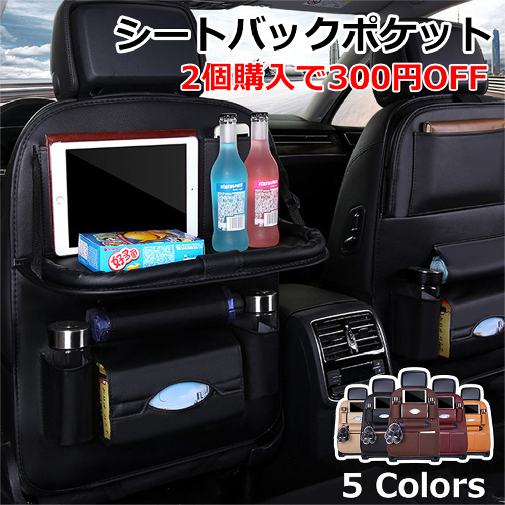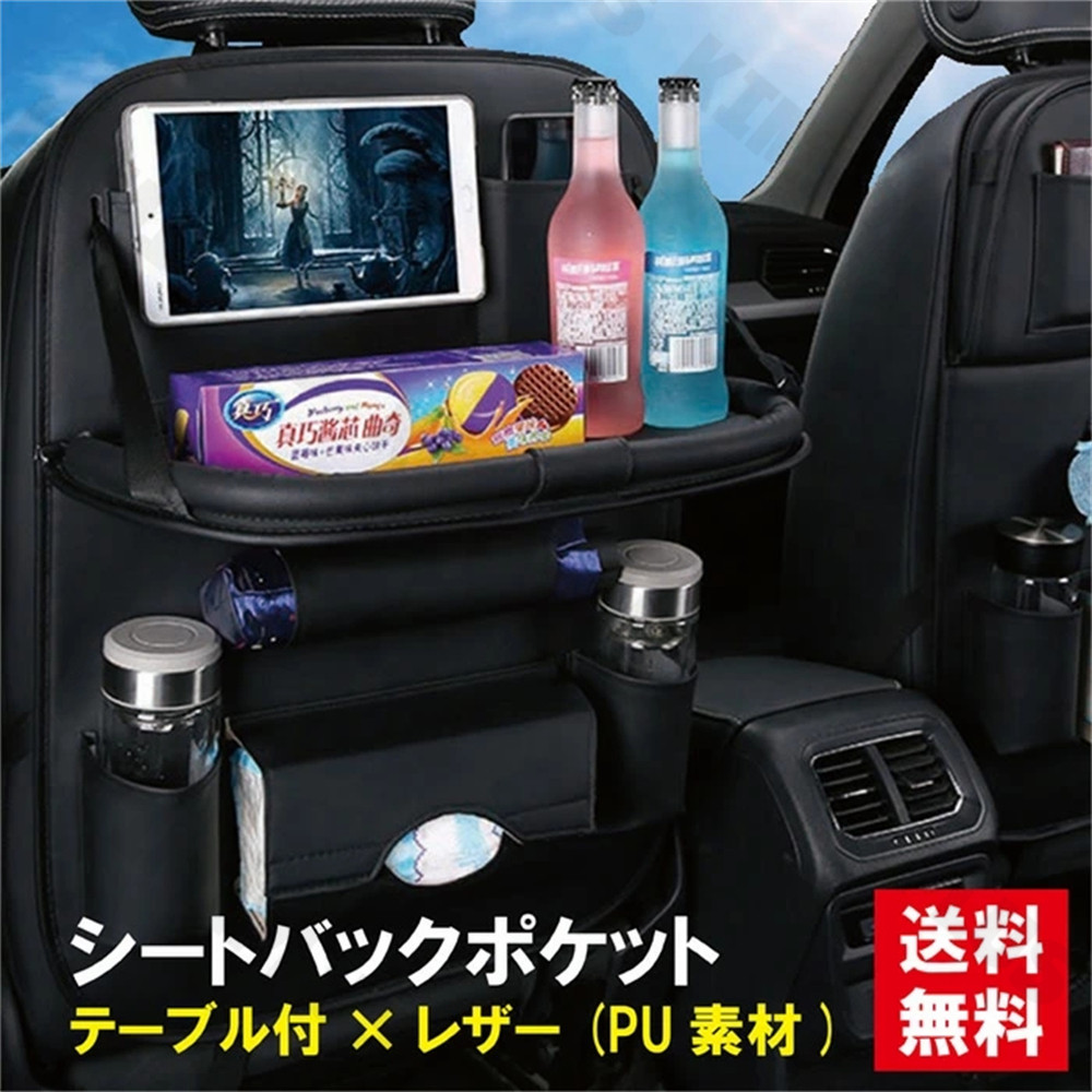 シートバックポケット 車内 テーブル 車 後部座席 レザー シート バック ポケット 後付け カバー 収納 子供 傘 タブレットホルダー 簡単装着 運転席 助手席 背面