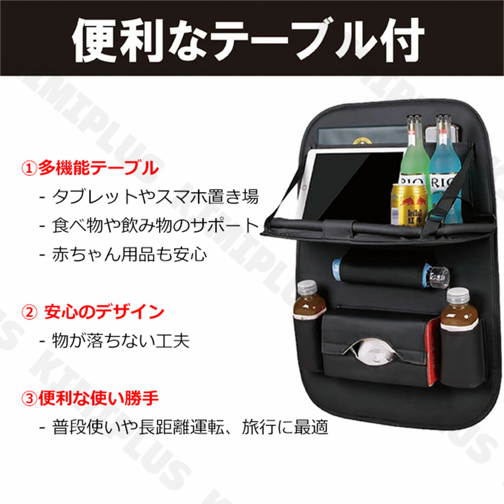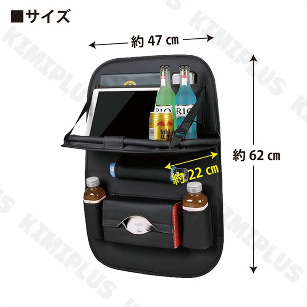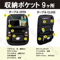 折り畳式テーブル付きで便利な車収納ポケット。タブレットのホルダーとしてもお使いいただけます。仕事やPC作業や食事などするなど使い方いろいろ!使わない時はテーブルを閉じることができるので車内も邪魔になりません。軽自動車・SUV・ミニバンなど様々な車に使用可能です。