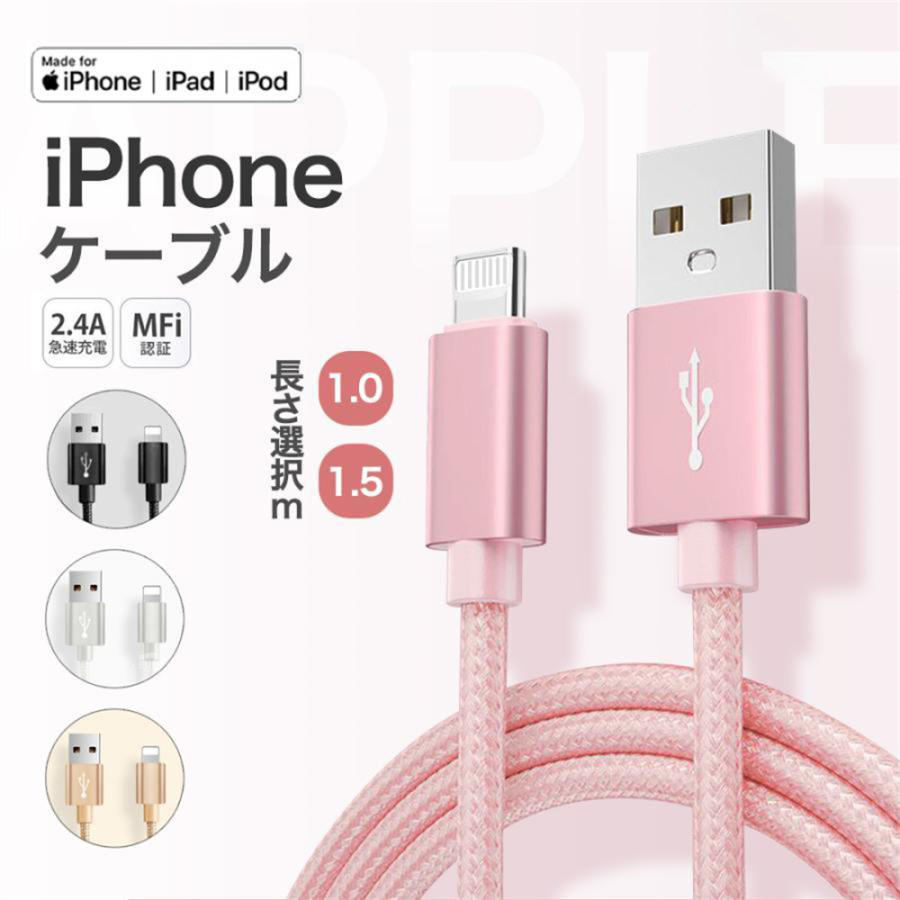 充電ケーブル iphone 耐久性 Lightningケーブル USBケーブル 高品質 高速転送 急速充電 充電器 データ転送ケーブル 2.4A 急速充電 0.5m/1m iPhone/iPad対応 新品