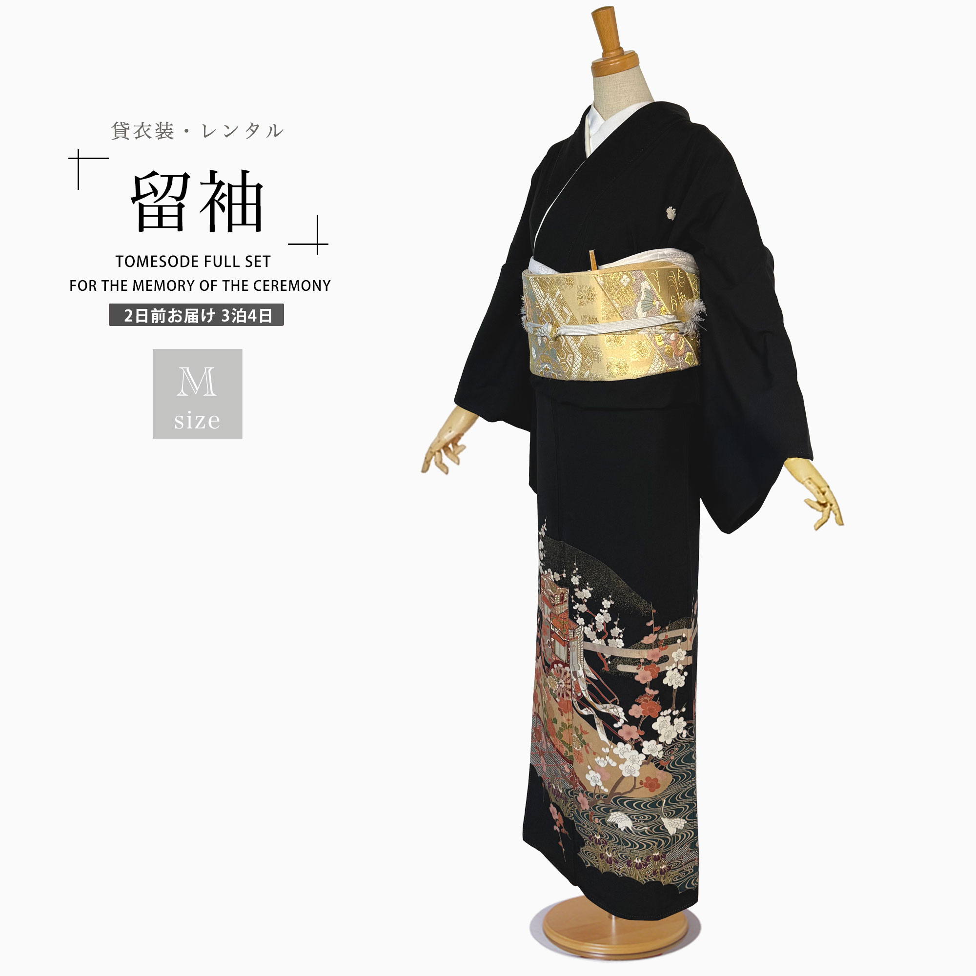 【レンタル】黒留袖 フルセット 五三桐 正絹 礼装 結婚式 母親 親族用 着物 3泊4日 往復送料無料 簡単返却 【Mサイズ No.0031】