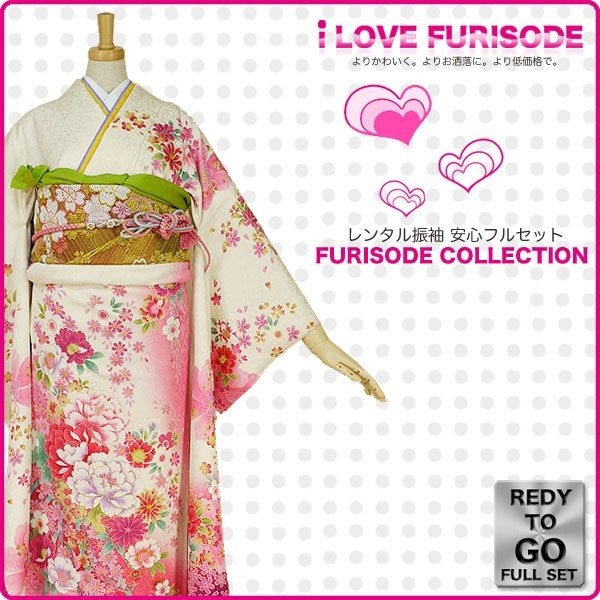 レンタル商品 振袖 フルセット 貸衣装 ホワイト white系 No.707 適応身長:150〜165cm位