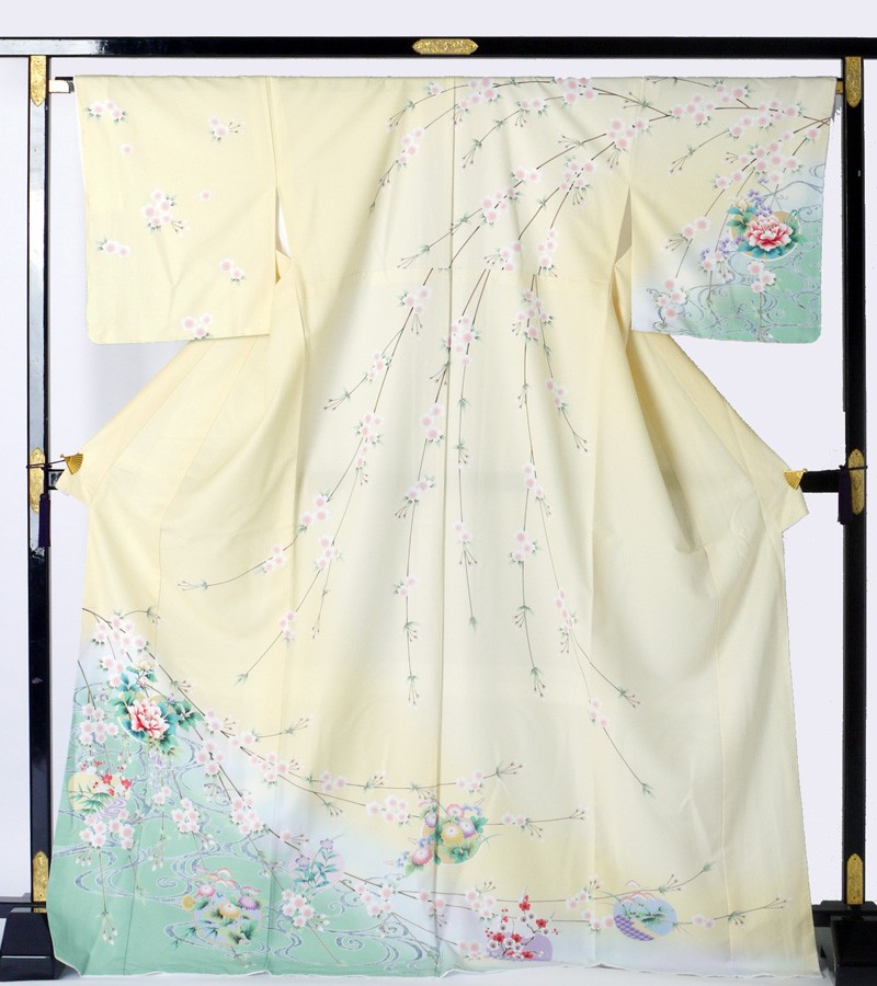 訪問着 レンタル商品 着物レンタル商品入学式 卒業式 七五三 お宮参り 結婚式 お宮参り 往復送料無料 黄色 桜No.0205