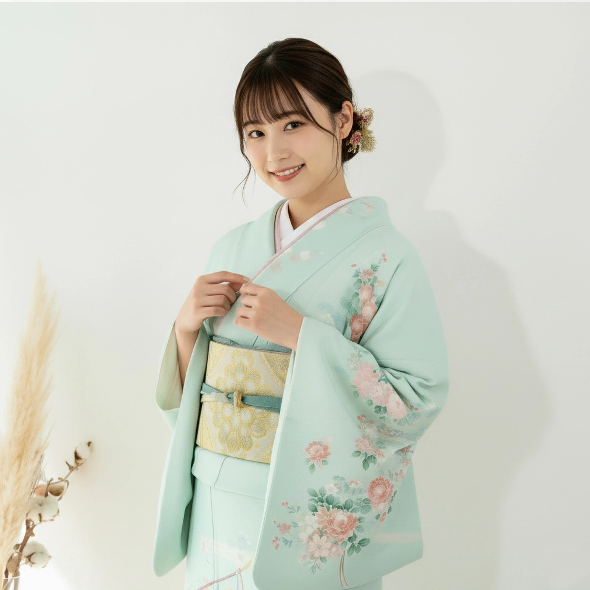 訪問着 レンタル 着物レンタル 貸衣装 フルセット 七五三 緑 グリーン 古典 雲 和モダン No.0359
