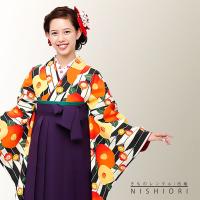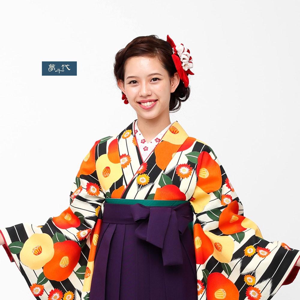 夢千代 二尺袖 着物 袴 レンタル商品 貸衣装 貸衣装 Sサイズ ジュニア袴(小学生)対応可 青 黒 椿 刺繍