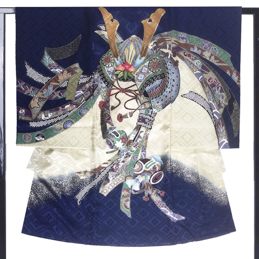 男児 熨斗目 レンタル商品 お宮参り 着物 帽子 よだれかけ セット 男の子 貸衣装 和服 祝い着 初着 産着 往復送料無料 紺 兜