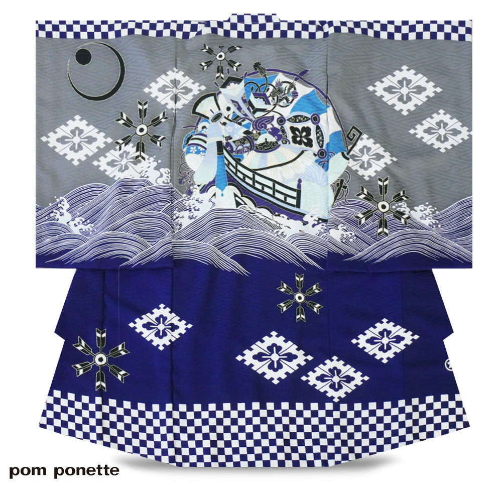 男児 熨斗目 レンタル商品 お宮参り 着物 帽子 よだれかけ セット 男の子 貸衣装 和服 祝い着 初着 産着 pomponette ブランド 市松模様 松竹 縁起柄