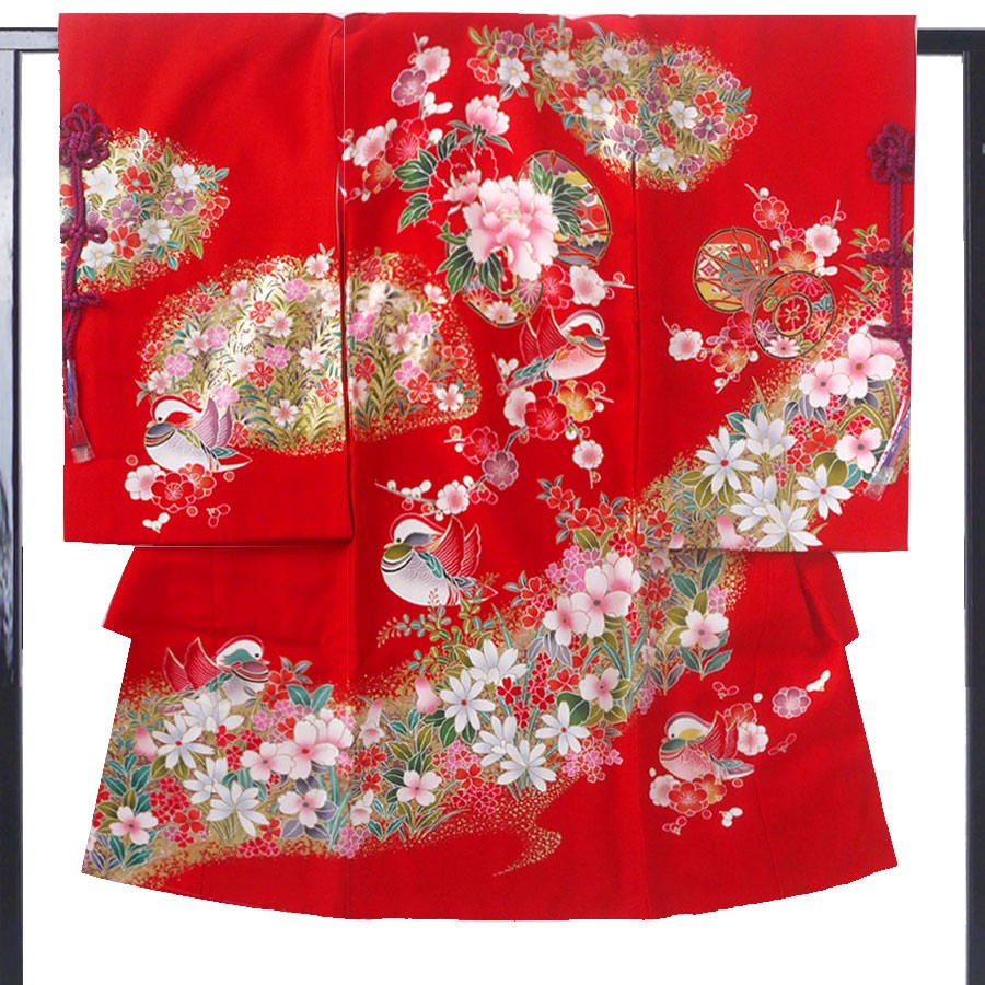 女児 産着 レンタル商品 お宮参り 着物 帽子 よだれかけ セット 女の子 貸衣装 和服 祝い着 初着 産着 往復送料無料 おしどり 赤