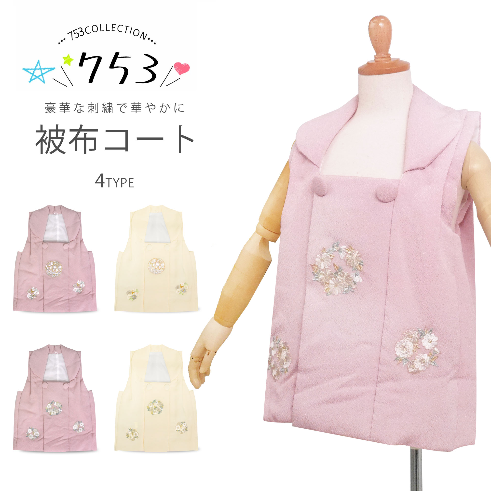 手軽にアレンジすでにお持ちの着物に合わせて、コーディネートの幅を広げられる被布単品。シンプルな着物も、被布をプラスするだけで一気に華やかに。伝統的な可愛らしさ丸みを帯びたやわらかいデザインが、幼さを引き立て、愛らしさたっぷり。着心地も快適柔らかい生地を使用し、動きやすさにも配慮。小さなお子さまにも安心です。