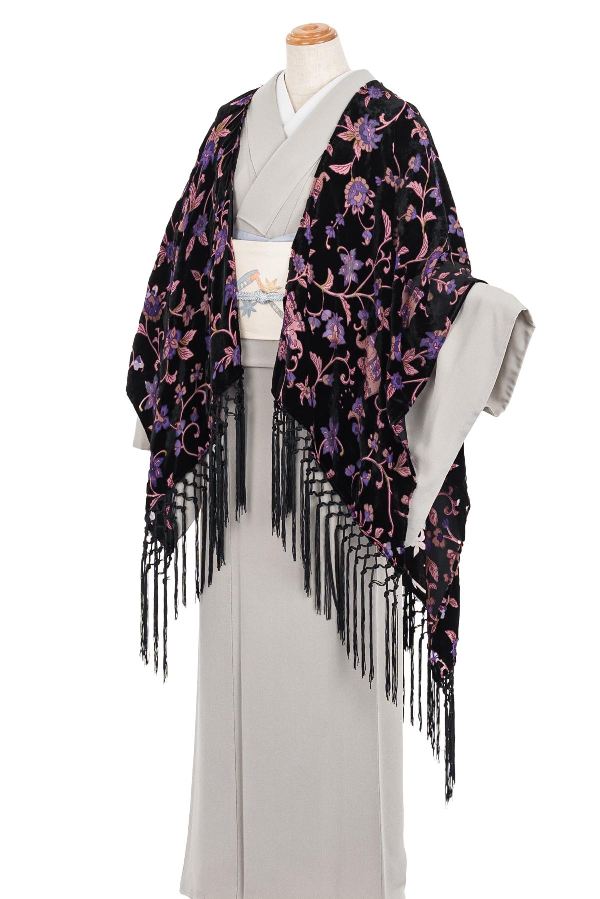 新品 岡重 シルクベルベットショール パープル