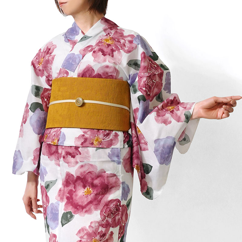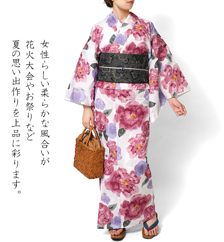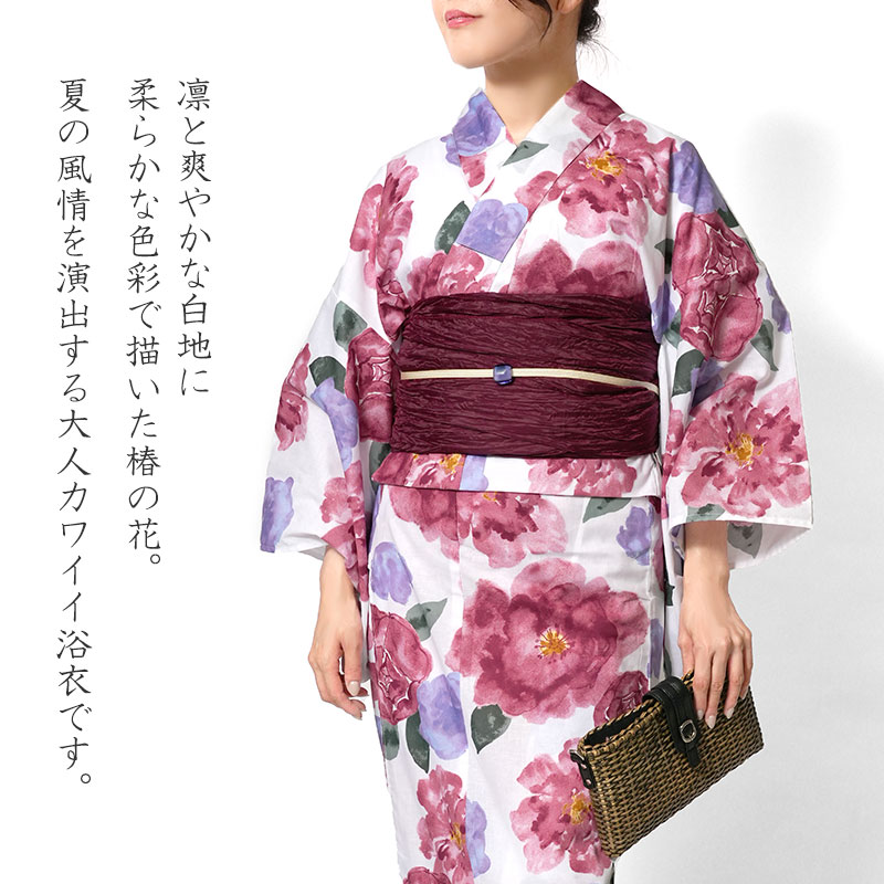 | カジュアル着物専門店が選んだ確かな品質とデザイン。 上品さと可愛さを併せ持つ大人の為の浴衣です。 古き良き和の装いに今のテイストを取り入れた現代感覚のデザイン。 華やかな大人の女性の夏の風情を演出してくれます。 ■生地感について 綿100%なので、天然素材ならではの落ち着いた風合いを持ち、やわらかで優しい肌触り。 ナチュラルで優しい風合いで、肌にはりつきにくく汗ばんでもべた付きにくい、爽やかな着心地です。 丈夫でお手入れがしやすく、ご家庭で丸洗いもOK。 ご着用の際には汗を吸い取り、透けを防ぐ浴衣スリップの着用をおススメします。 ■用途 花火大会やお祭りなど、夏を楽しむイベントにはもちろん、お友達とのお食事やデートなど、様々なシーンに着用できます。 | |