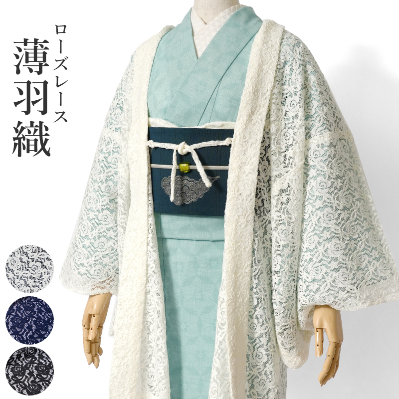 薄羽織 レース 薔薇 花柄 黒 白 紺 シック レトロ モダン バラ 和装 日本製 着物 長羽織