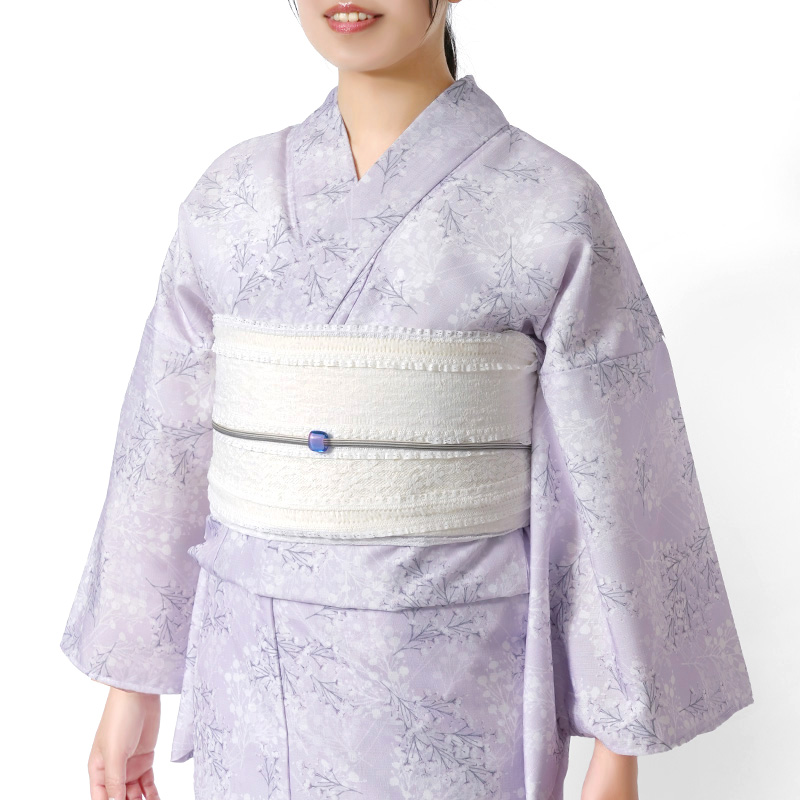 | ■セットオプションのラメしわ兵児帯について キラキラと繊細なラメの輝くラメしわ兵児帯とのセット購入もお選びいただけます。 [サイズ] 長さ:約400cm 幅:約40cm [素材] ポリエステル64%、ナイロン35%、ポリウレタン1% ラメを織り込んだキラキラと涼やかな風合いが魅力のしわ兵児帯です。 兵児帯は、芯を入れずに仕立てた幅の広い柔らかい帯で、帯結びの手軽さとアレンジの幅の広さが魅力です。 リボン結びするだけでも華やかに仕上げることができる他、お太鼓風や角出し風、トリプル仮紐をつかったパタパタ結び等の変わり結びや、輪ゴム等をつかったコサージュ風のアクセント等、自由で多彩なアレンジが楽しめます。 締め付け感が少ないため体への負担が少なく、動きやすいのも魅力。小さく折り畳めるため保管もしやすく、お出かけの際の持ち運びにも便利です。 | |