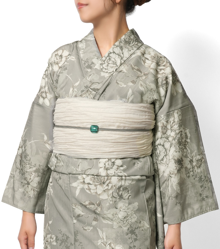 | ■セットオプションのしわ兵児帯について シンプルでボリューム感のあるしわ兵児帯とのセット購入もお選びいただけます。 ラメしわ兵児帯 [サイズ] 長さ:約400cm 幅:約40cm [素材] ポリエステル64%、ナイロン35%、ポリウレタン1% ラメを織り込んだキラキラと涼やかな風合いが魅力のしわ兵児帯です。 兵児帯は、芯を入れずに仕立てた幅の広い柔らかい帯で、帯結びの手軽さとアレンジの幅の広さが魅力です。 リボン結びするだけでも華やかに仕上げることができる他、お太鼓風や角出し風、トリプル仮紐をつかったパタパタ結び等の変わり結びや、輪ゴム等をつかったコサージュ風のアクセント等、自由で多彩なアレンジが楽しめます。 締め付け感が少ないため体への負担が少なく、動きやすいのも魅力。 小さく折り畳めるため保管もしやすく、お出かけの際の持ち運びにも便利です。 | |