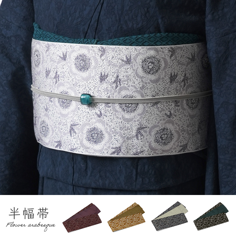 | カジュアル着物や浴衣にオススメの半幅帯です。 ポリエステル製でシワになりにくく、汚れてもお手入れ簡単。普段使いで気軽にお使いただけます。 虫食いに強いため、保管がしやすいのも特徴です。 ジャガード織りで立体的に表現された柄が味わい深く、約440cmと長尺のため、変わり結びもお楽しみいただけます。 着物はもちろん浴衣にも合わせやすいので、シーズン問わず活躍します。 ■デザインについて 両面使えるリバーシブル仕立て。 表は、曲線で描かれた花唐草がジャガード織によってデザインされてます。 裏は幾何学模様のワントーンでシンプルなため、合わせる着物や浴衣を選びません。 | |