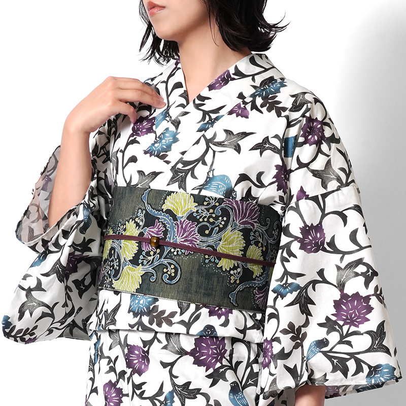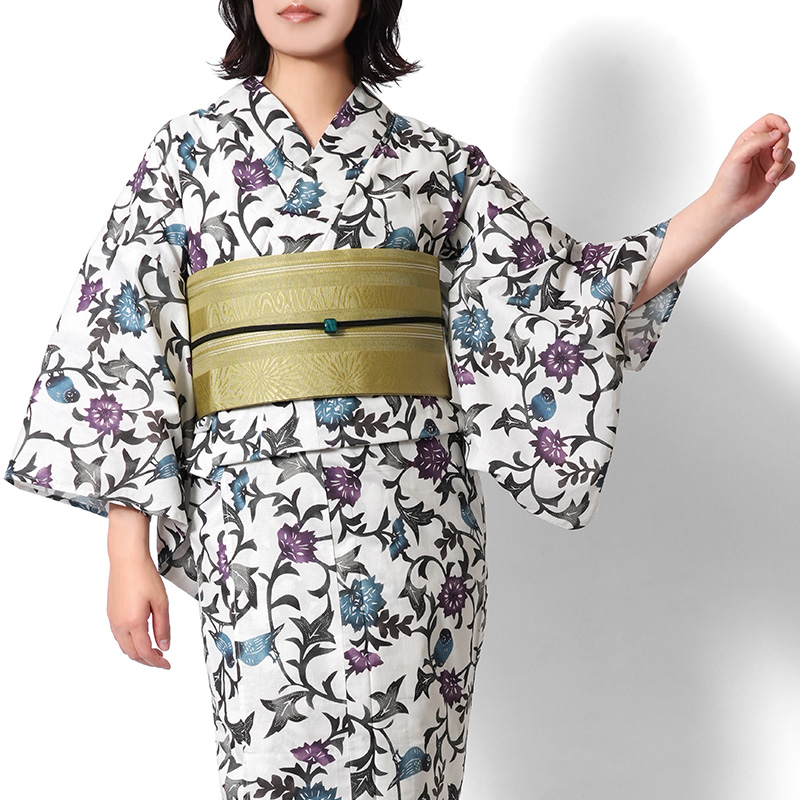 | 紅型風浴衣 花唐草と小鳥 | |