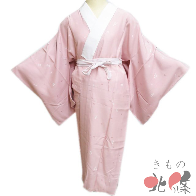 襦袢 長襦袢 未使用 正絹 桜の花びら模様 文字 いろは歌 一斤染色 身丈119cm 裄63cm きもの北條 A1304-1