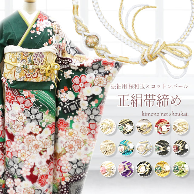 正絹 帯締め 振袖用 桜トンボ玉 コットンパール 単品 組紐 振り袖 おびじめ 成人式 帯じめ 豪華