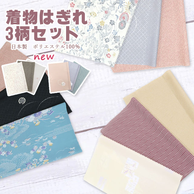 はぎれ 着物生地 3枚セット ハギレ 生地 カットクロス ポリエステル