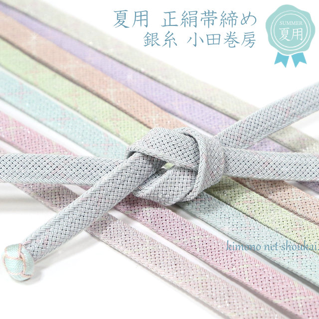 夏用 帯締め 小田巻 シャーベットカラー 15667 正絹 夏物 おびじめ 絹 単品 カジュアル