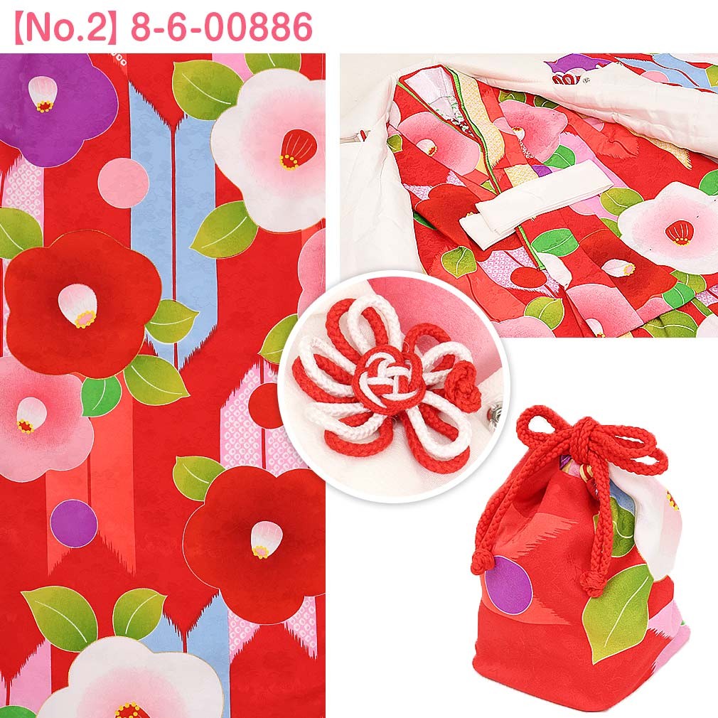 No.2:8-6-00886 / 赤地 矢絣に椿