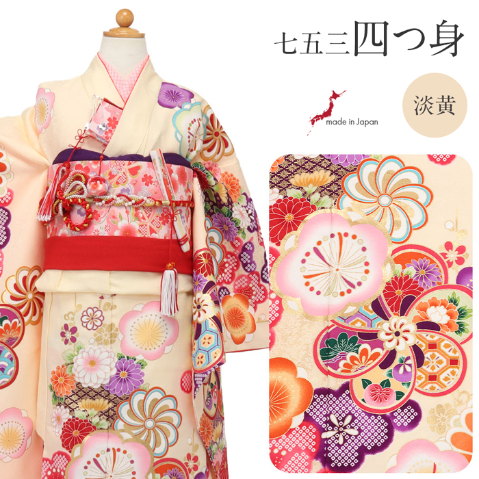| 女の子の7歳のお祝いである「帯解きの儀(おびときのぎ)」は、幅の広い帯を結び始める、大人に一歩近づくお祝い。 大切な思い出を彩る「しゃれっこ」ブランドの四つ身着物3点セットをご紹介いたします。 四つ身は淡いクリーム地にねじ梅や万寿菊などが咲き誇る麗らかで女の子らしいデザイン。 寒い冬を耐えて春にはいち早く花開く梅は、忍耐力や生命力を願う紋様として愛されてきました。 子孫繁栄を願う鹿の子柄や、ねじ梅の中には松や竹が描かれ、松竹梅として福徳を呼ぶ吉祥紋様として、お子様の活躍や成長の願いが込められております。 着物一面に散らされた花が豪華絢爛に咲き誇り晴れの日を美しく彩ります。 セットでお届けする長襦袢は、肌映りの良い、蛍光ピンク色のかわいい鹿の子柄。 袖や裾から柄の長襦袢がチラッと見えた時にとってもオシャレ。 お好みで半襟を付けて、さらに着姿を可愛らしく見せても。 お着物は、高級ポリエステル素材を使用していて肌触りも滑らか。 お手入れしやすい素材なので、汚れを気にせずに着こなせます。 衿元も重ね襟がついているので華やか。 朱赤色の重ね衿は、光によって綾菱紋が浮かび上がり顔周りを美しく引き立てます。 長襦袢、お着物は日本製なので安心してお使いいただけます。 ご姉妹での着用や、肩・腰上げをすることで7歳以外の七五三にもお使いいただけます。 七五三だけでなく、お正月やひな祭り、結婚式など活躍シーンも豊富な着物です。 お勧めの逸品、ぜひ手に取ってお楽しみくださいませ。 |