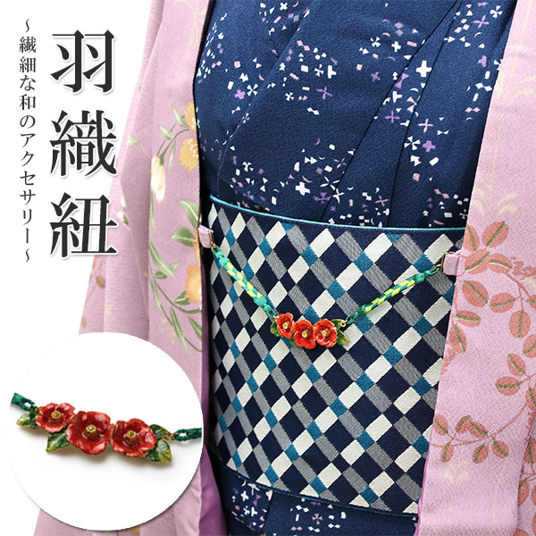 羽織紐 椿 つばき 花 単品 可愛い はおりひも Sカン 小紋 洒落着 色無地 パーティー オールシーズン カジュアル ギフト 和装小物 着物 和服 和装 帯飾り 日本製