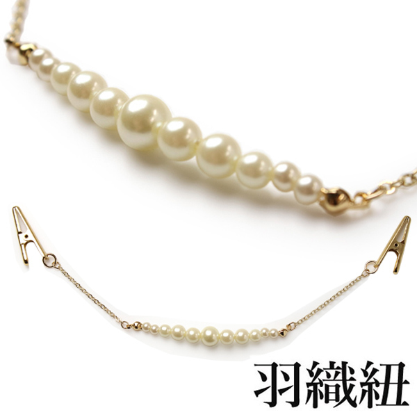 羽織紐 女性 パール ビーズ 白 クリーム色 クリップ 和装小物 羽織 コート レディース カジュアル 日本製