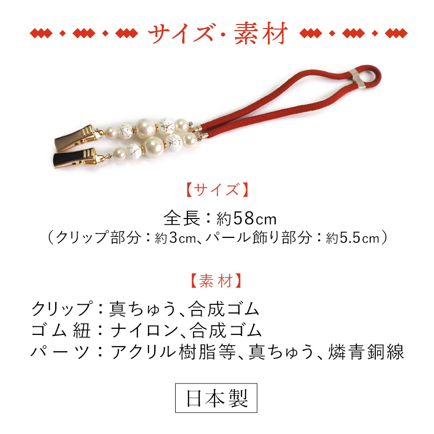 | 全長:約58cm (クリップ部分:約3cm、パール飾り部分:5.5cm) |
