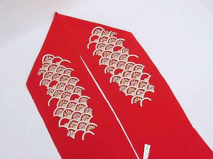 【刺繍 半えり】正絹 刺繍半衿 渡敬/菊 青海波☆赤【新品】メール便可