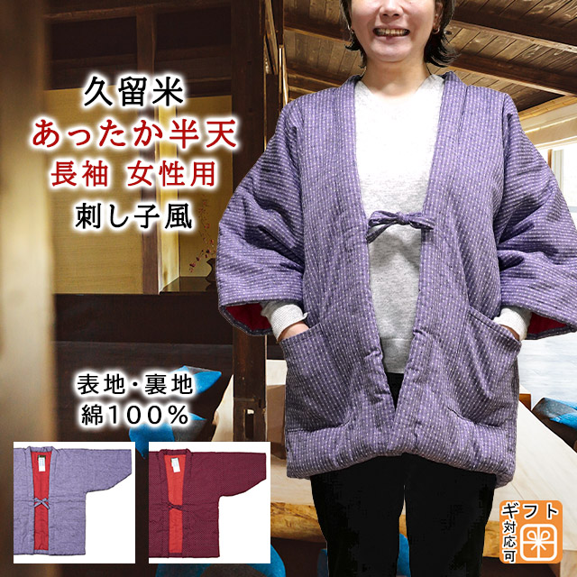 【日本製】綿の中わた入り 久留米はんてん 女性用