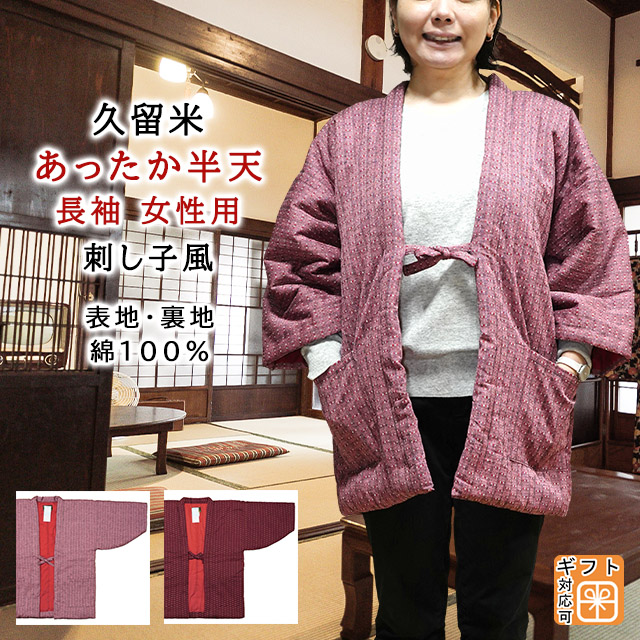 【日本製】綿の中わた入り 久留米はんてん 女性用