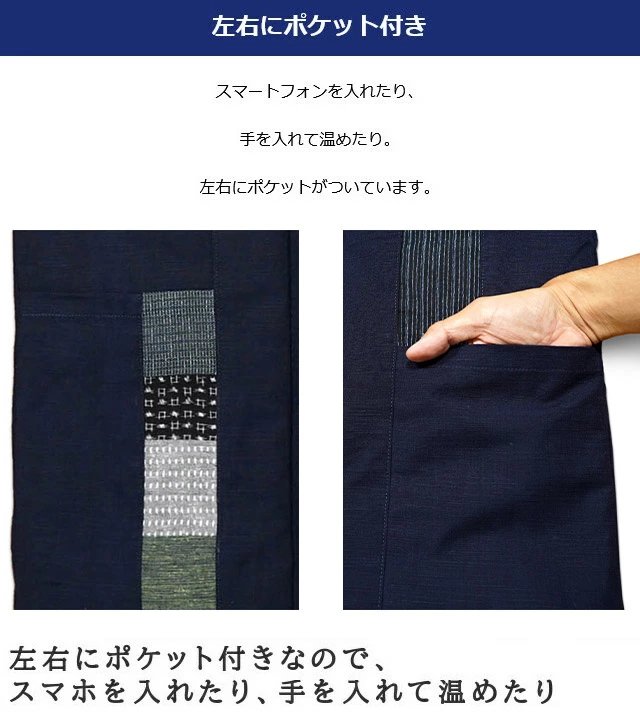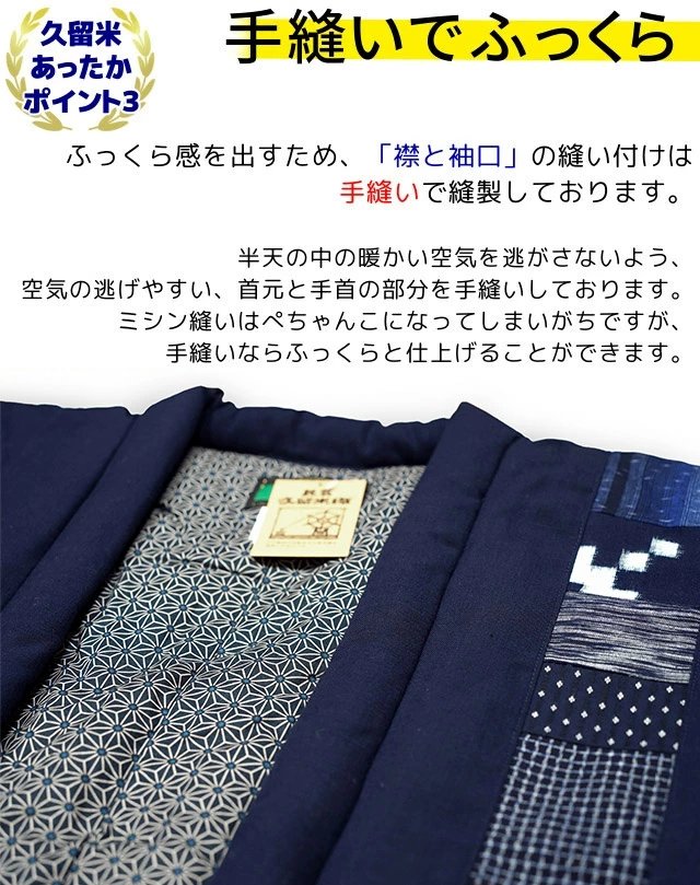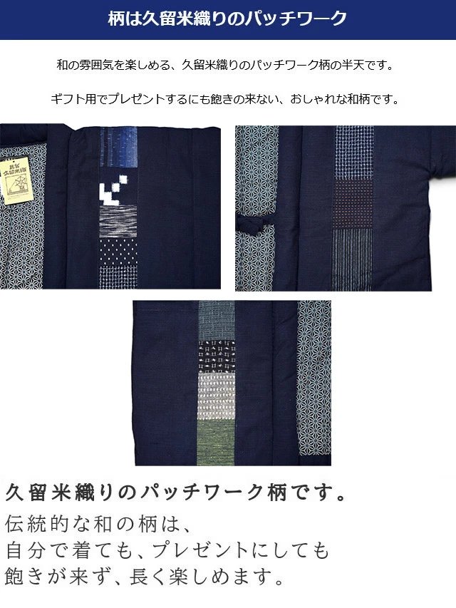 日本製の素材で、日本の久留米で手づくりされた、本格派の半天です。