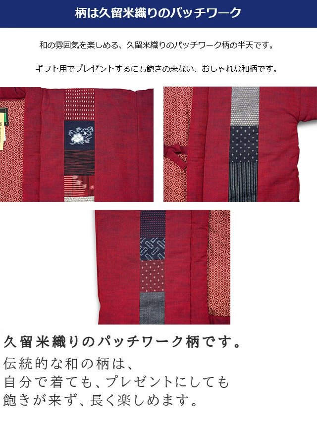 日本製の素材で、日本の久留米で手づくりされた、本格派の半天です。