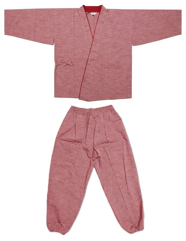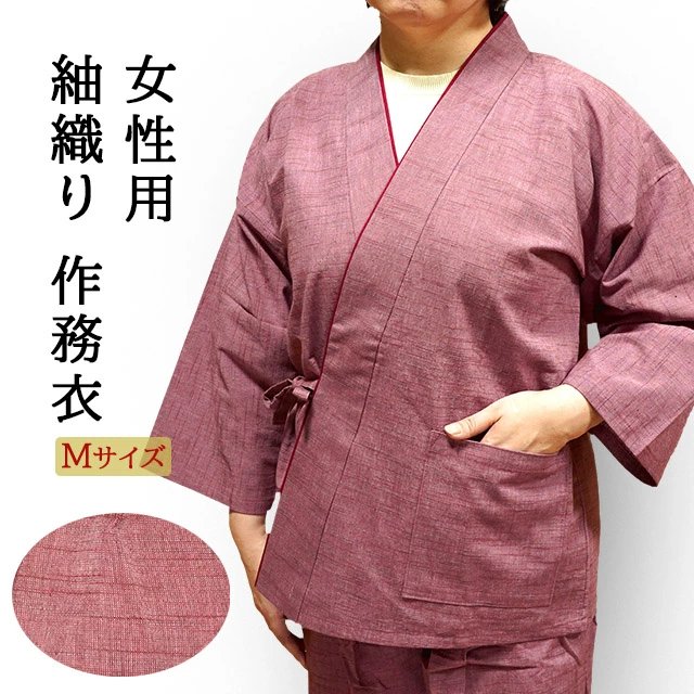 粋姿 紬織り 作務衣 長袖 長ズボン 丈夫な 綿100% 日本製 重ね着に 女性用 レディース 秋用 冬用 春用 渋いピンク色 Mサイズ 部屋着 寝巻き 仕事着 作業着に