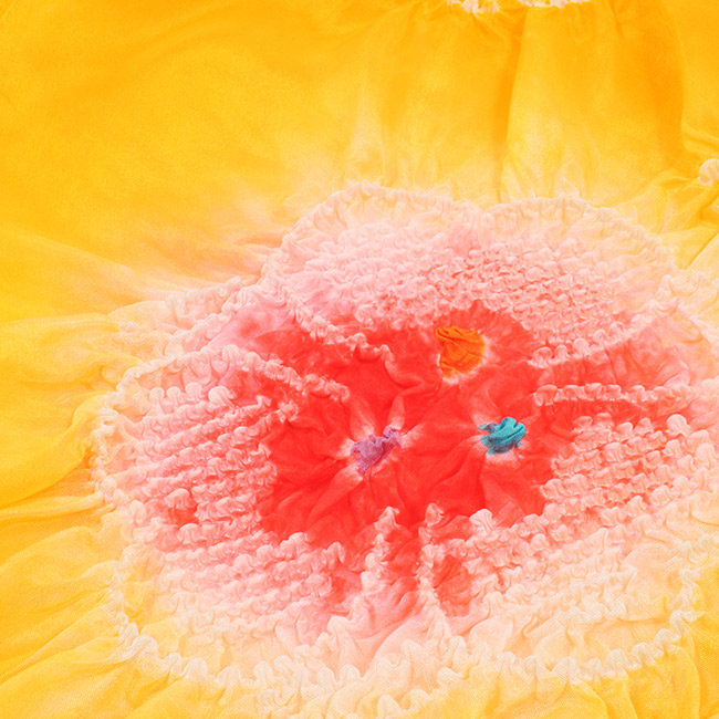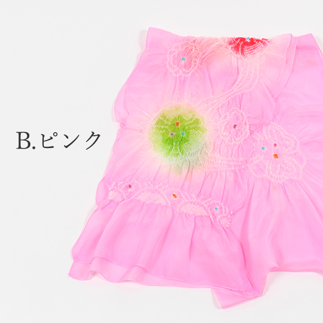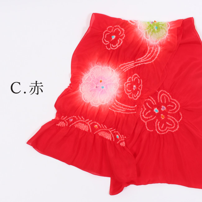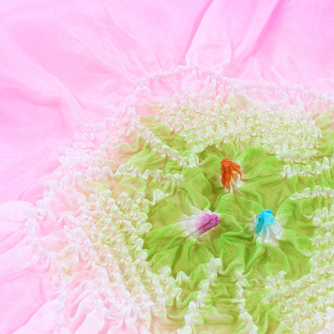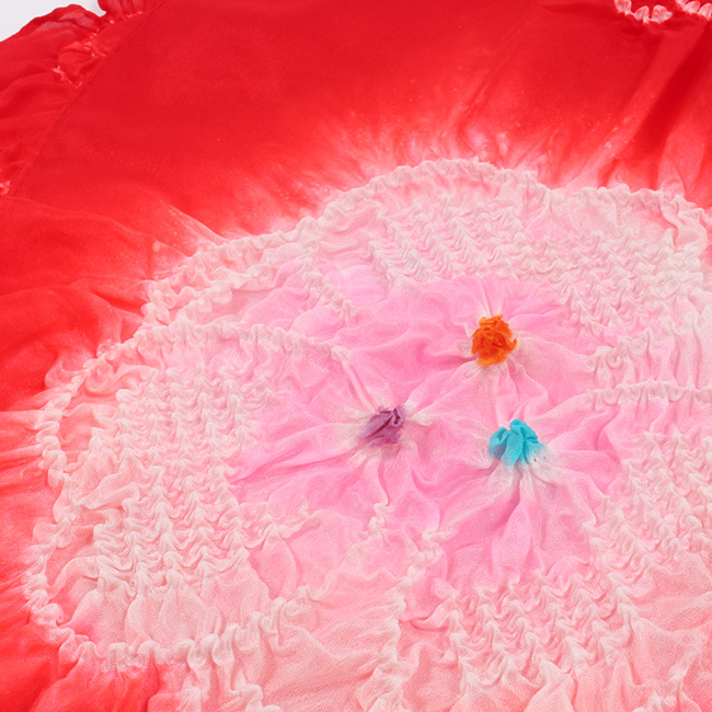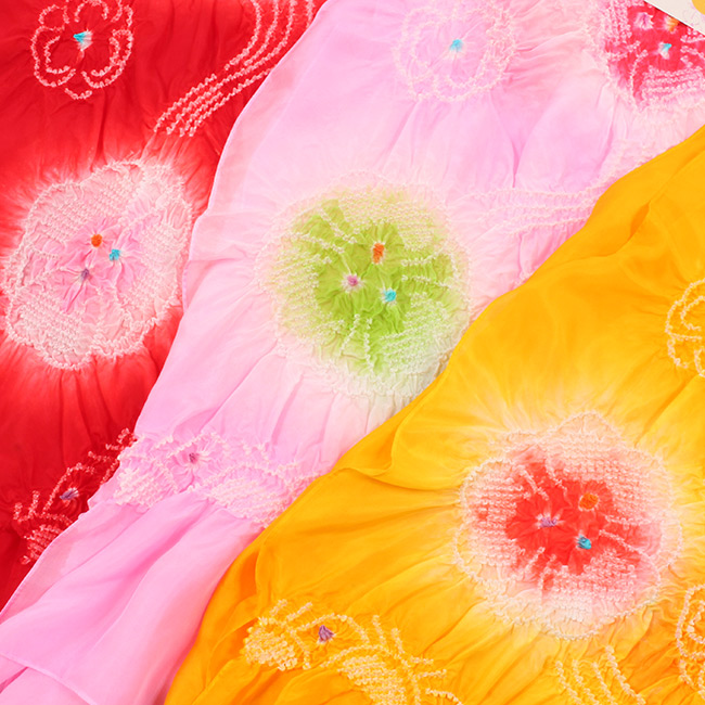 絞りの中のお色は、お色の場所が反対の場合もございます。職人さんによる染のため、ひとつづつ若干染具合やお色の配置が微妙に違う場合もございます。 |