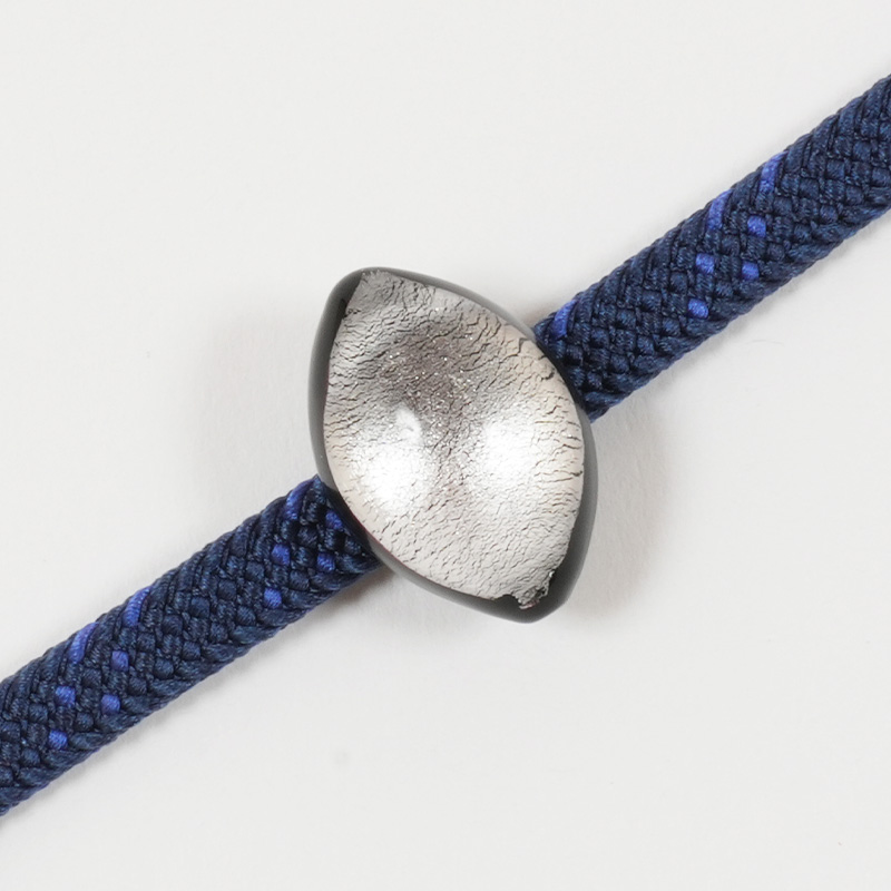 紐を通す裏側も全てガラス製なので、完成度が高く一体感があります。また、帯や紐に傷がつく心配もありません。