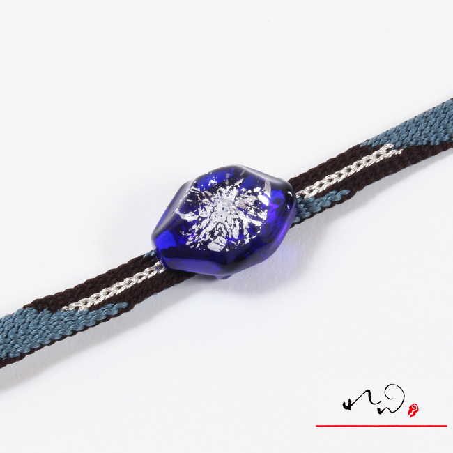 繊細なガラス細工で作られた帯留めは、小さいながらも存在感があります。紐を通す裏側も全てガラス製なので、完成度が高く一体感があります。また、帯や紐に傷がつく心配もありません。