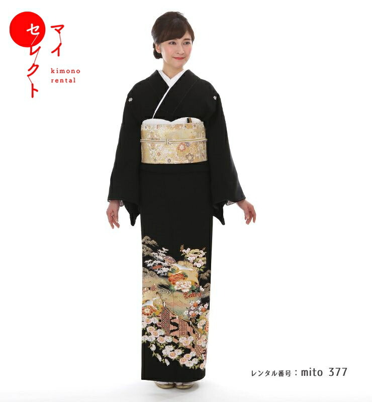 留袖レンタル 小さいサイズ 普通サイズ 黒 mito-377 40代 50代 60代 70代 高級 正絹 人気 結婚式
