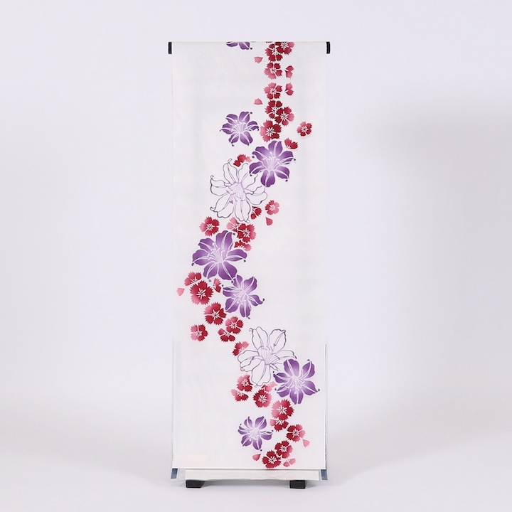 新品 反物 浴衣 綿紅梅 本染め 百合 撫子 白 赤 紫