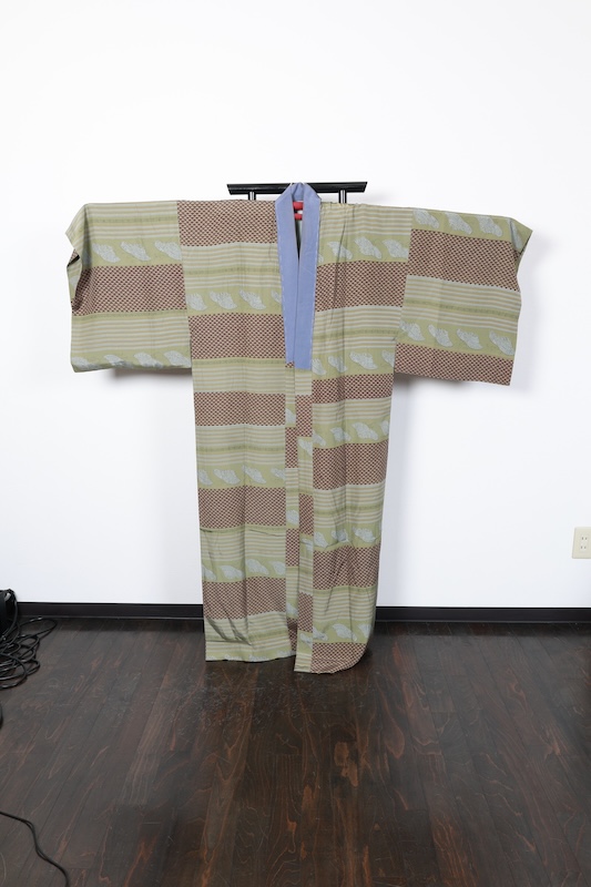 男長襦袢 緑 茶 グレー 袈裟 鱗柄 市松 B1021