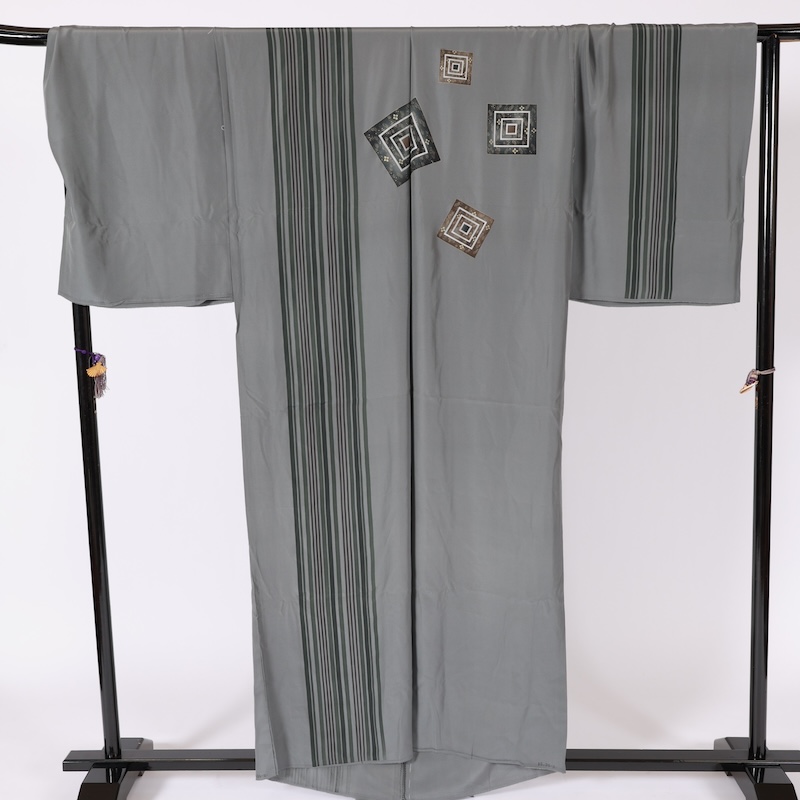 男長襦袢 新品み仕立て グレー 黒 グリーン 紫 縞 B397