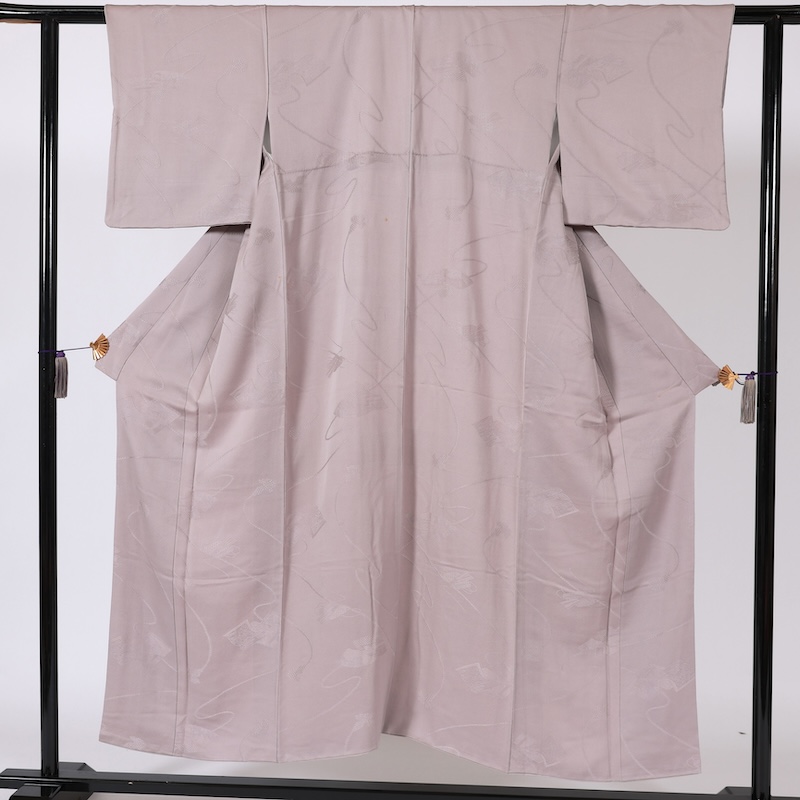着物 色無地 薄紫 地紋通し 文箱 扇面 /B99
