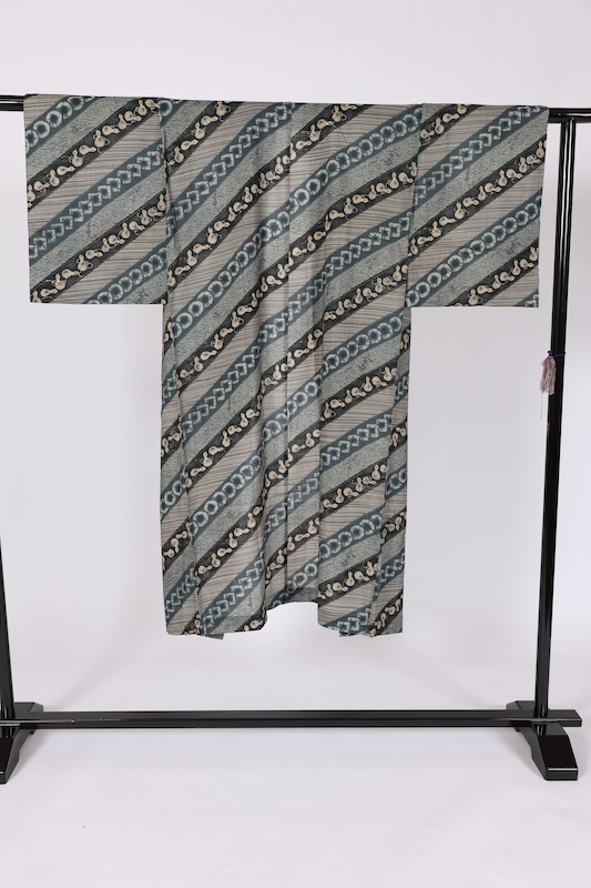 男長襦袢 グレー 紺 瓢箪 幾何学模様 G107