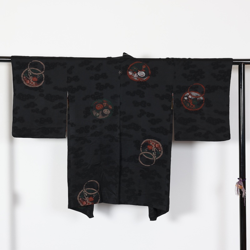 黒羽織 西陣織り ゴールド 珊瑚朱 梅 まる T454