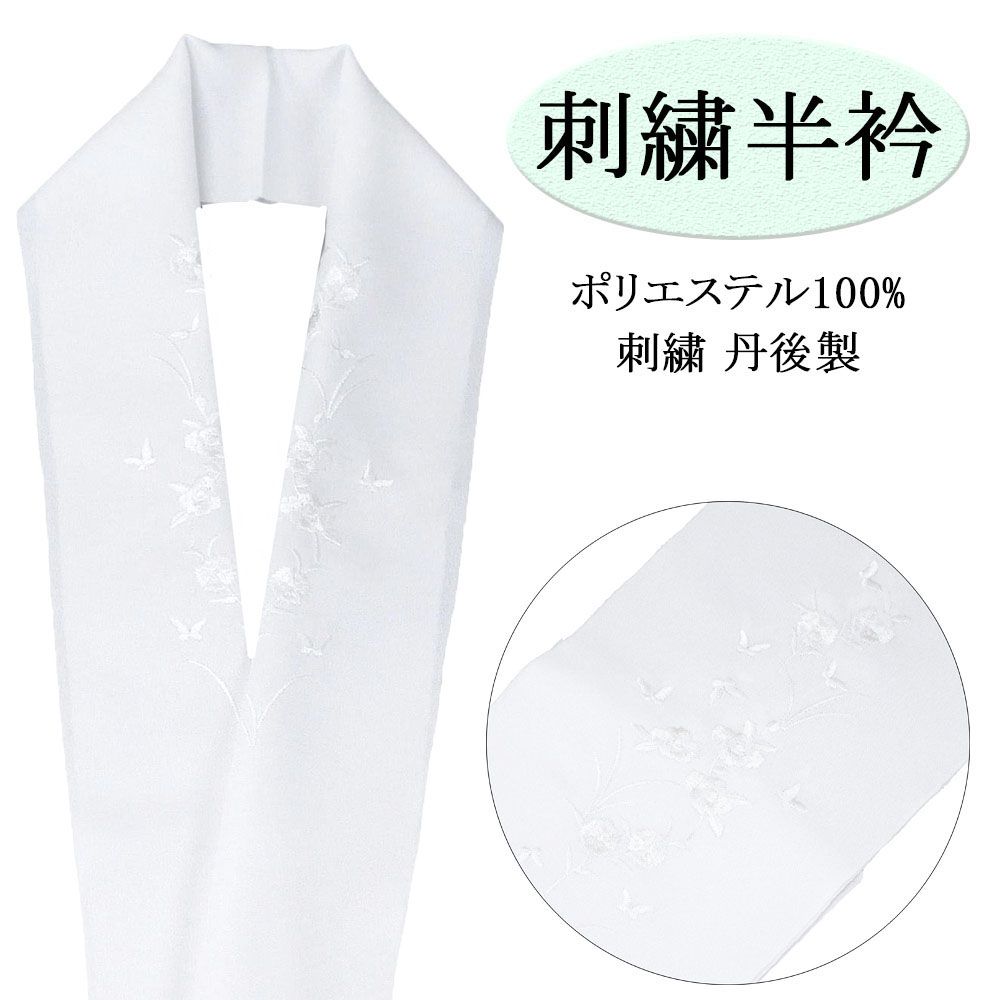 半衿 刺繍半衿 刺繍 日本 丹後 ポリエステル 白 刺繍半襟 和装小物 着物 n00020
