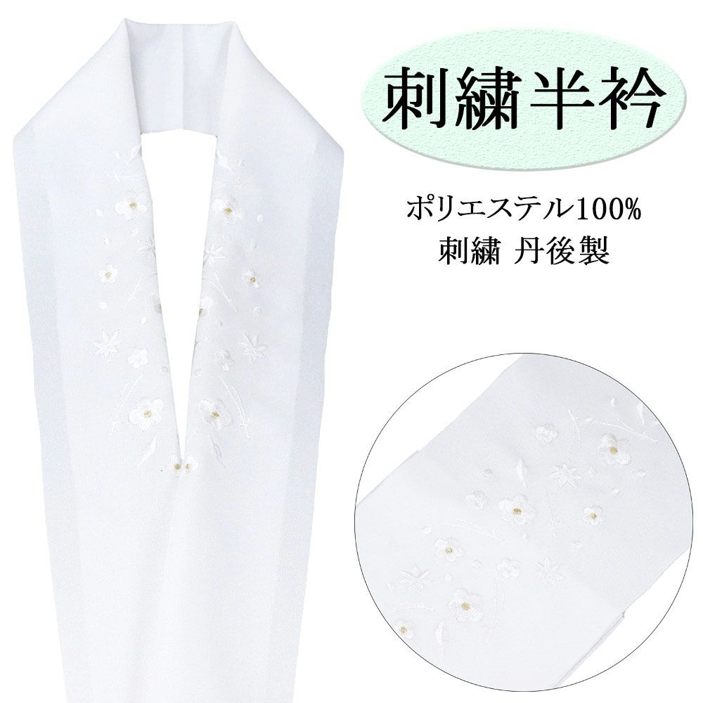 半衿 刺繍半衿 刺繍 日本 丹後 金糸入り ポリエステル 白 刺繍半襟 和装小物 着物 n00022