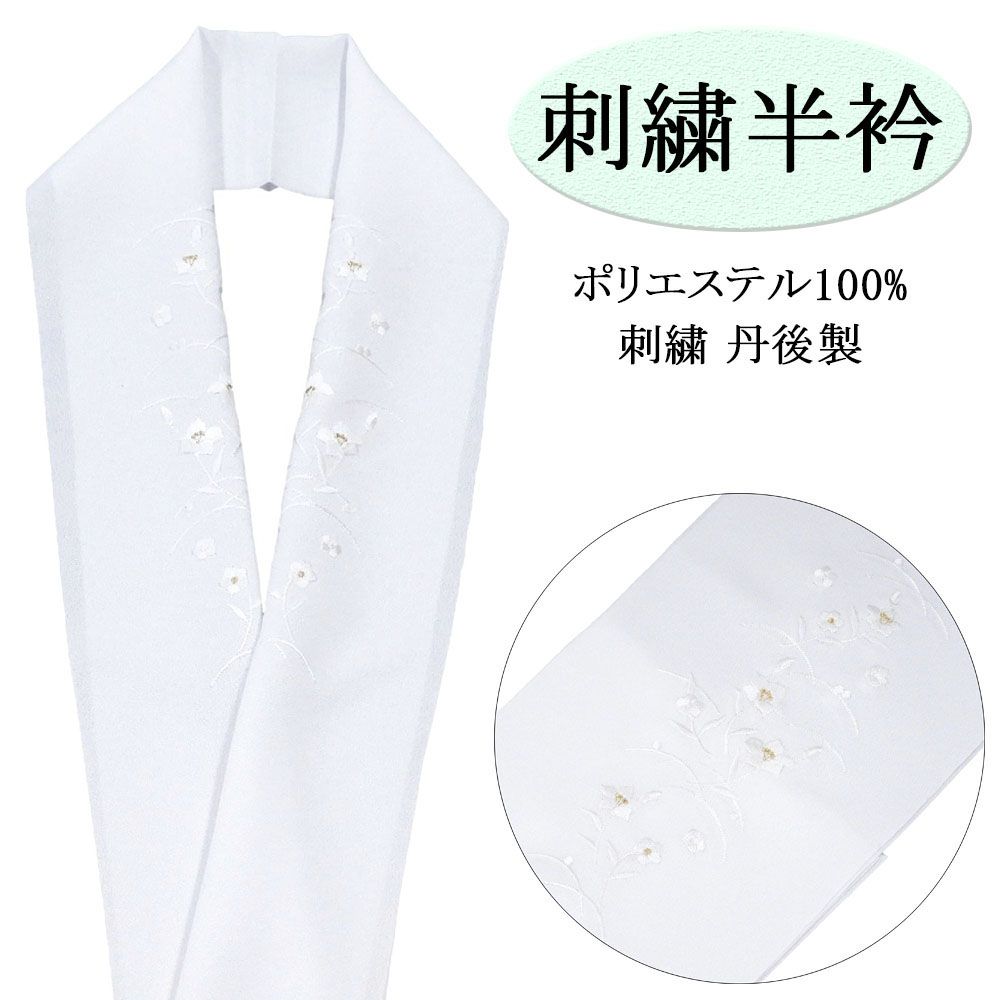 半衿 刺繍半衿 刺繍 日本 丹後 金糸入り ポリエステル 白 刺繍半襟 和装小物 着物 n00024