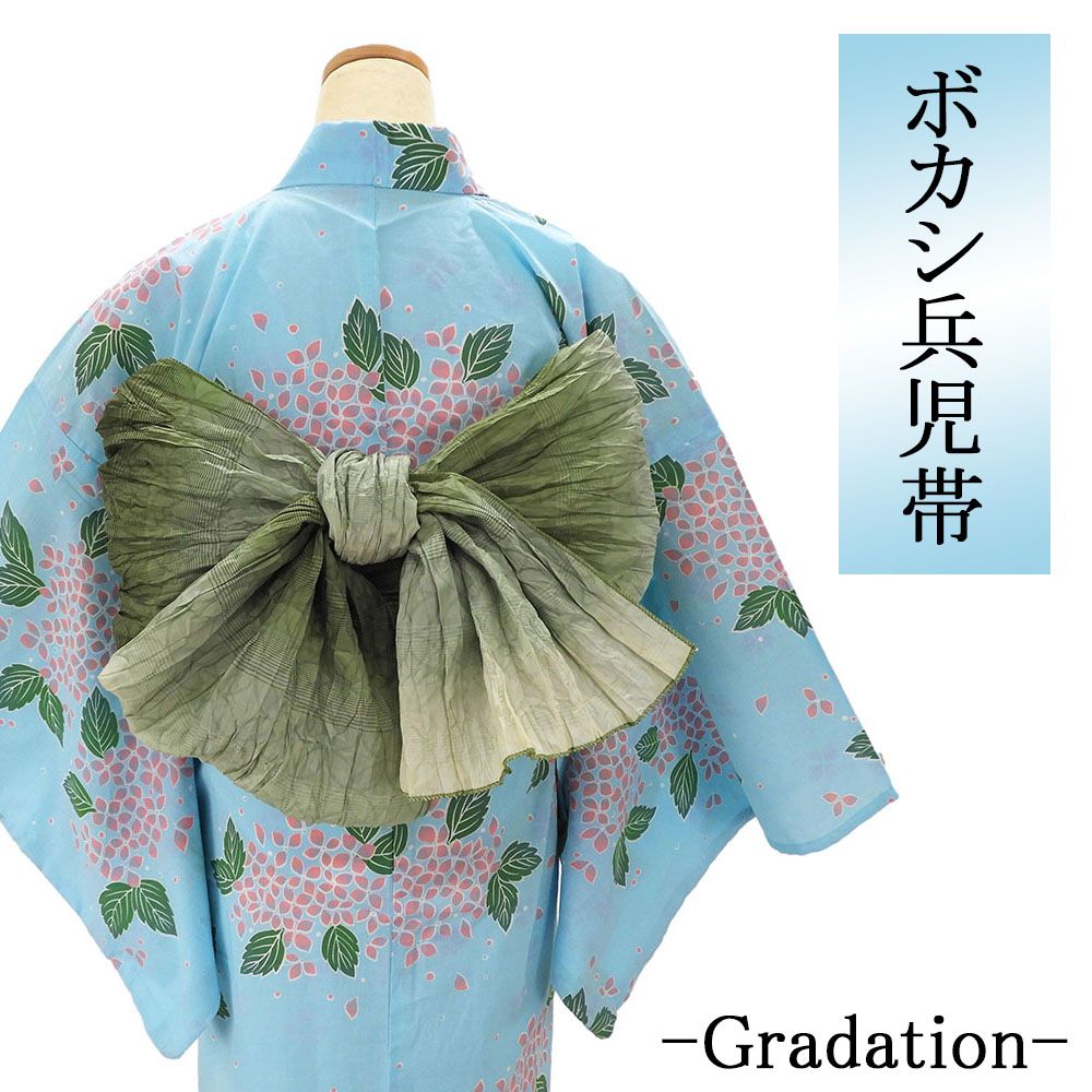 兵児帯 しわ兵児帯 ゆかた帯 シワ グリーン グラデーション ぼかし モスグリーン 簡単 ふわり かわいい レディース 女性 大人 ヘコオビ フリーサイズ 浴衣 p7016