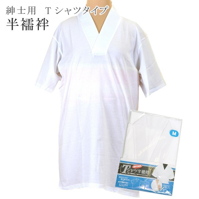 男物 半襦袢 はんじゅばん 肌着 Tシャツタイプ Tシャツ半襦袢 殿方 メンズ 白 M、L、LL sin2158
